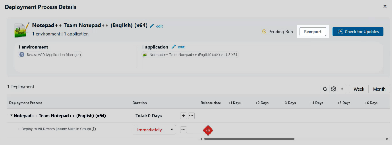 You can reimport applications from either the Applications page or the Deployment Process Details page.