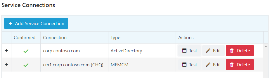 TIP: You can test the Recast Management Server's connection to third-party services by clicking the Test button on the Service Connections page.